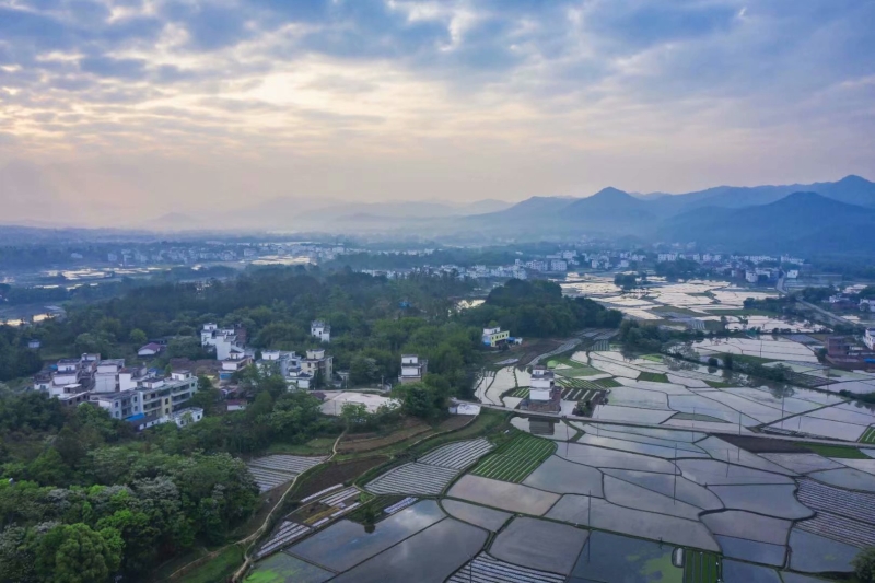 福建龍岩櫻花園,春天來臨,一年一度的櫻花盛開。山坡茶園曲折,櫻花綴滿枝頭,粉色的櫻花隨着綠色的茶園,清新好看。